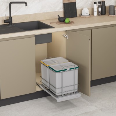 Bağımsız Zemin Bağlantılı Çöp Kovası 16+16 Litre