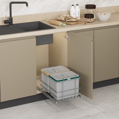 Bağımsız Teleskopik Raylı Zemin Bağlantılı Çöp Kovası 12+12 Litre